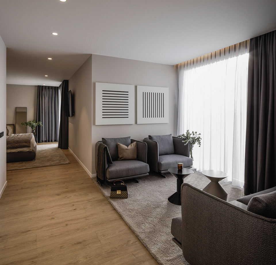Furthermore, the master bedroom suite can include, for example, a previous space with a seating area. It’s also a pleasure to have different corners and spaces for reading. Or for any simple and quick work. Comfort and luxury are both well combined in our inHAUS’ designs.