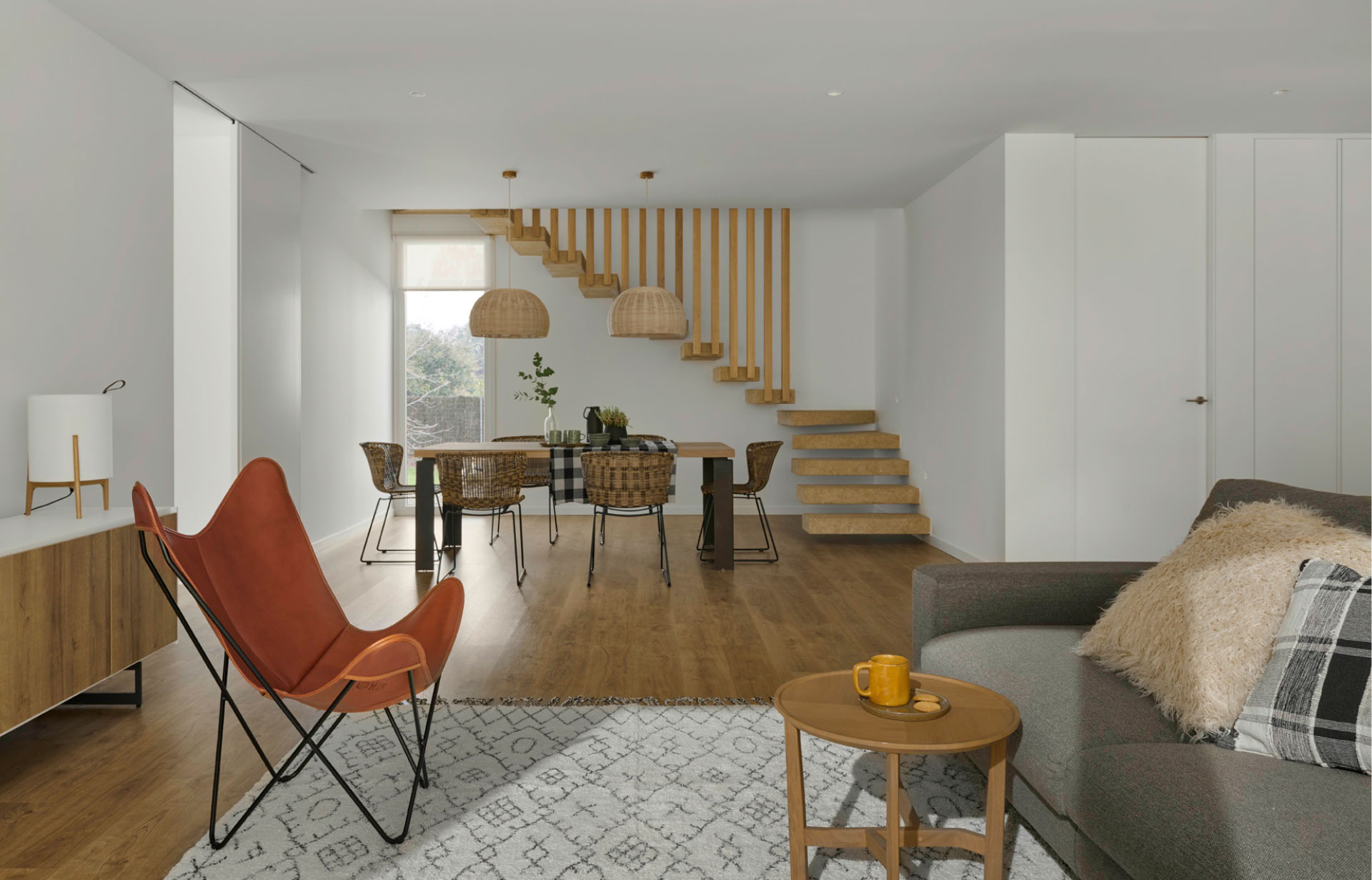 The fluidity of spaces and their connection with the exterior landscape reinforce the natural and relaxed character of the house due to its colour palette, materials and textures.