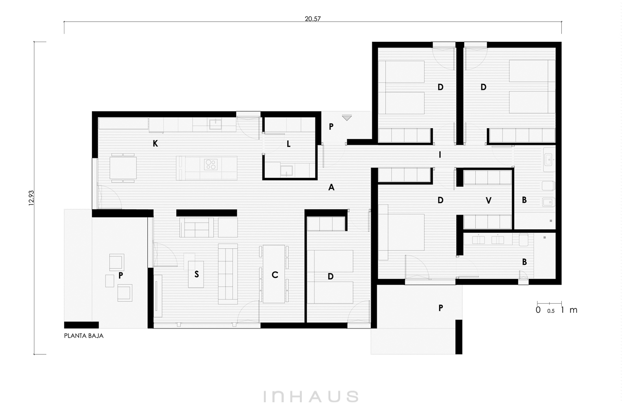 It is a one floor house with four bedrooms. Volumetrically, two volumes stand out. The first one includes the day area connected to the main porch; the other contains the night area with two bedrooms and a bathroom, as well as a master suite with dressing room, bathroom and private porch.