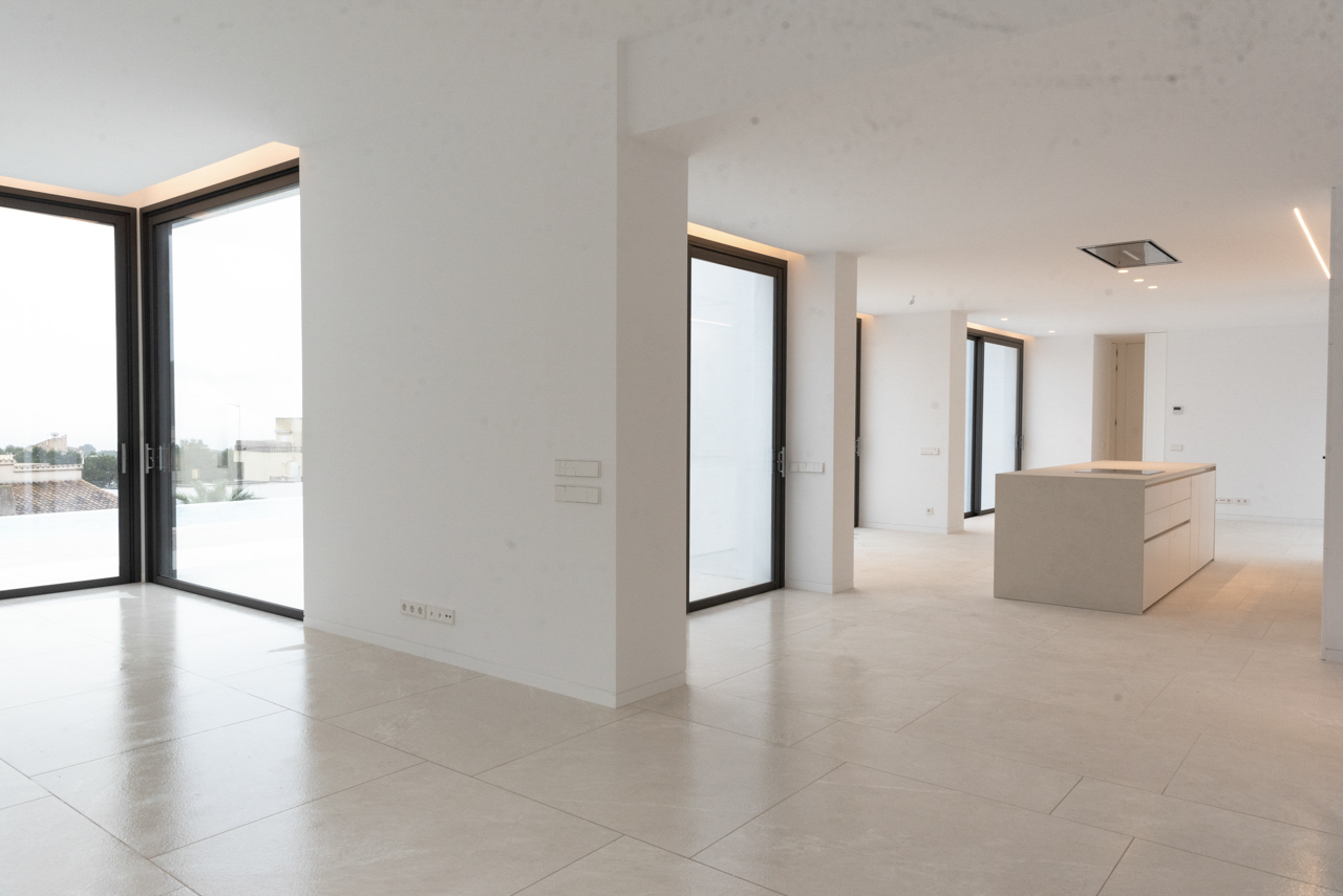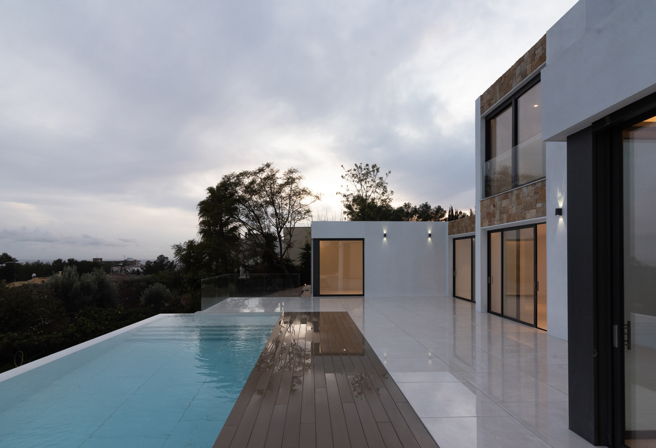 Ein spektakuläres Haus, in dem sich die gewählten Materialien mit den großen Räumen verbinden und das mediterrane Licht verstärken.