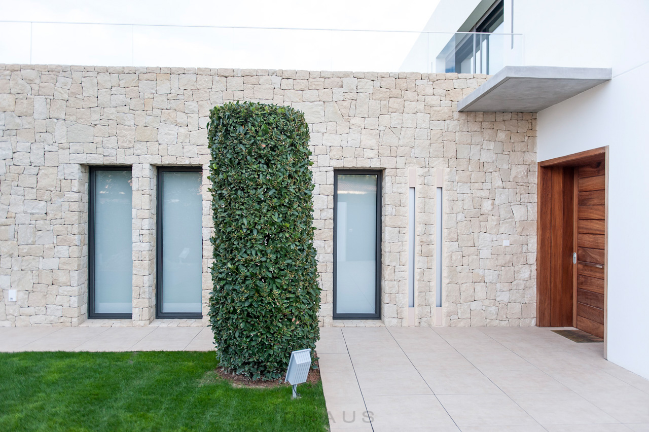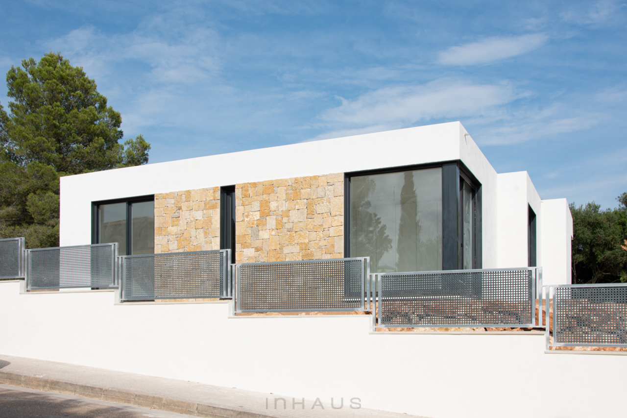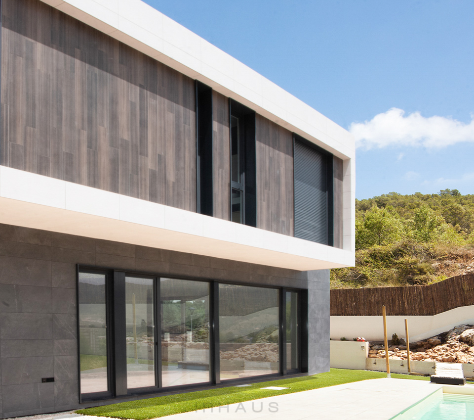 Betonhäuser mit einem modernen und zeitgenössischen Charakter. Große verglaste Flächen, so dass das Licht in den gesamten Raum fällt. Dank des EMOHA-Systems können Sie die Ausführung wählen, die am besten zu Ihrem Stil passt. Großformatige oder normalgroße Feinsteinzeugfliesen, Kombinationen aus natürlichen Materialien wie Steinmauerwerk oder eine technologische Tarimatec-Verkleidung, um dem Außenbereich Ihres Hauses Ihre eigene Persönlichkeit zu verleihen.