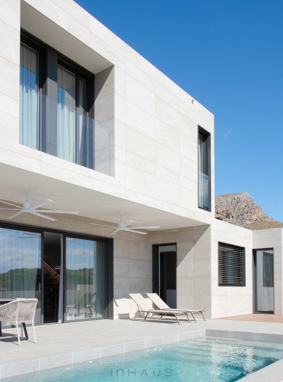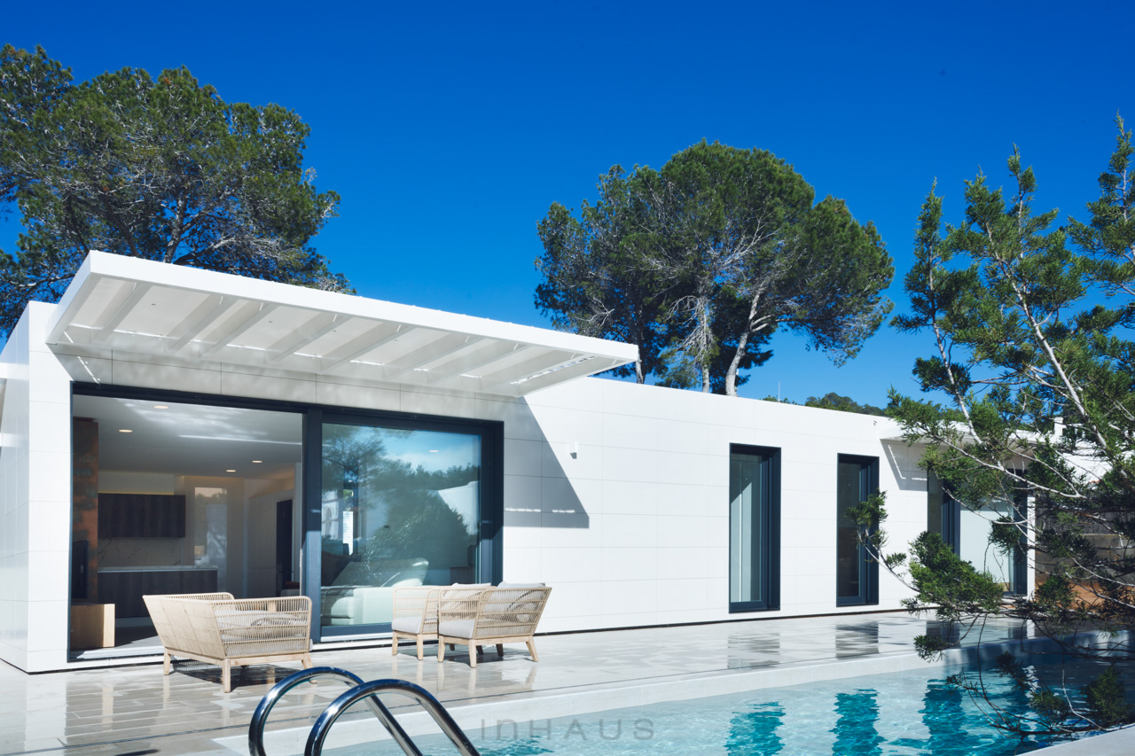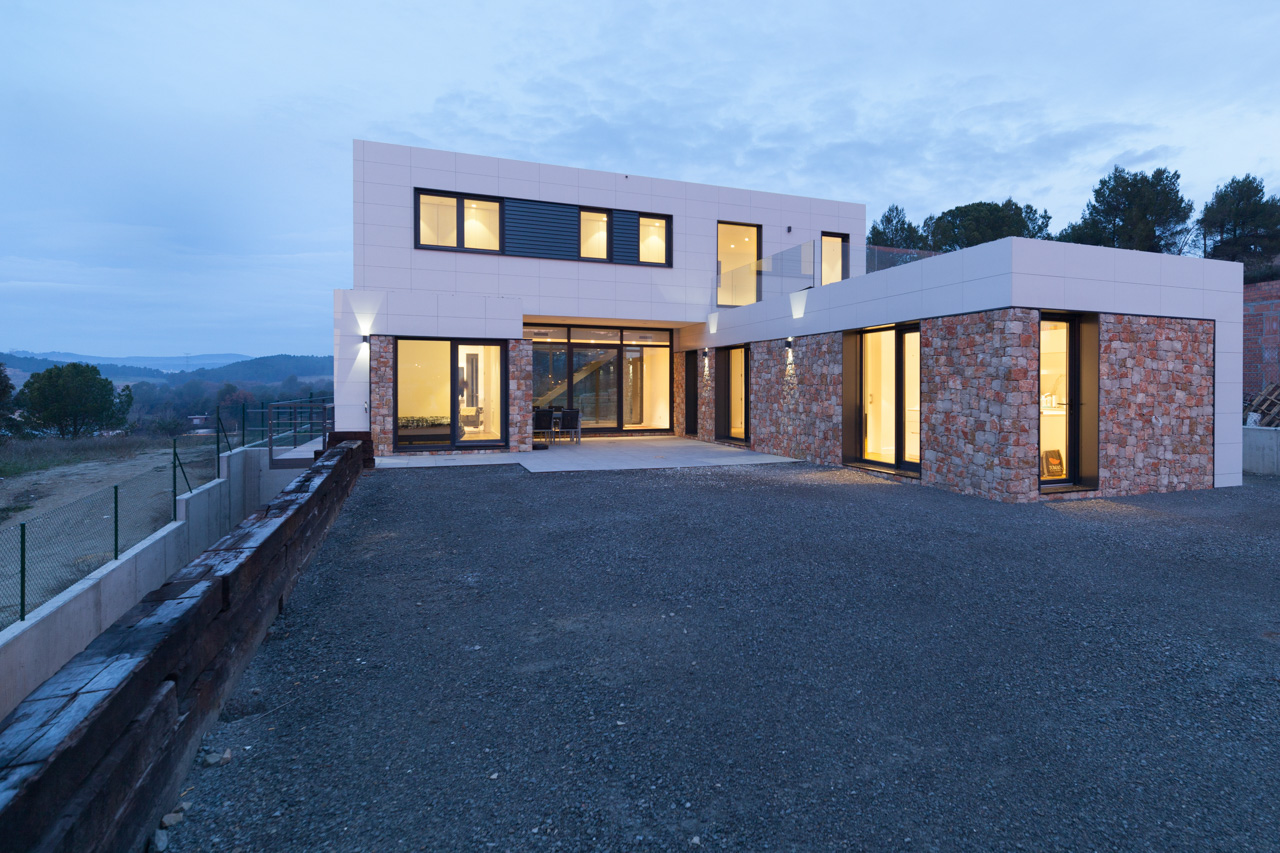 Betonhäuser mit einem modernen und zeitgenössischen Charakter. Große verglaste Flächen, so dass das Licht in den gesamten Raum fällt. Dank des EMOHA-Systems können Sie die Ausführung wählen, die am besten zu Ihrem Stil passt. Großformatige oder normalgroße Feinsteinzeugfliesen, Kombinationen aus natürlichen Materialien wie Steinmauerwerk oder eine technologische Tarimatec-Verkleidung, um dem Außenbereich Ihres Hauses Ihre eigene Persönlichkeit zu verleihen.