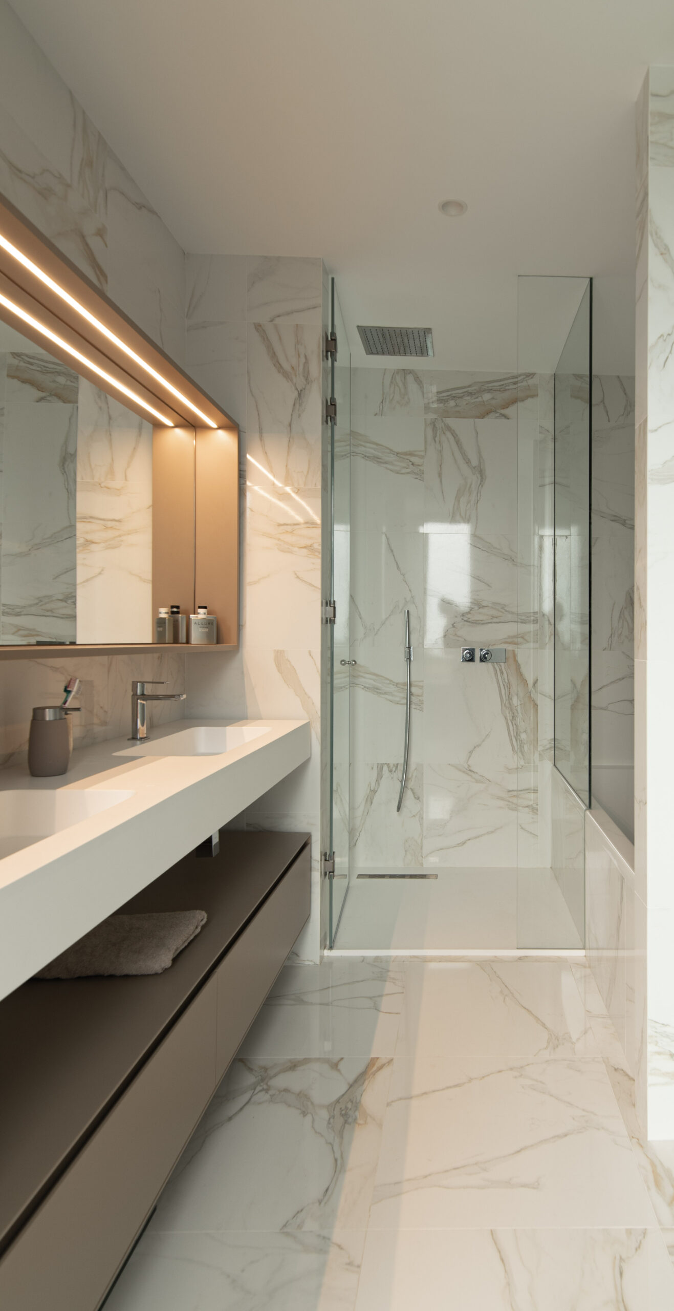 Die Gestaltung eines Badezimmers ist nicht nur eine Frage der Materialien und des Stils, sondern auch der Kreativität der Form. Bei inHAUS homes scheuen wir uns nicht, innovative Formen und Designs zu erkunden. Von freistehenden Badewannen mit einzigartigen Formen bis hin zu maßgeschneiderten Waschbecken mit integriertem Stauraum können wir jedes Detail an Ihre Bedürfnisse und Ihren Geschmack anpassen. Maßarbeit bringt nicht nur Funktionalität, sondern auch ein einzigartiges Gefühl von Luxus.