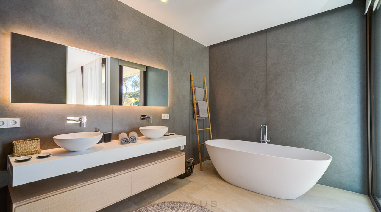 Materialien und Farbtöne spielen bei der Gestaltung von Luxusbädern eine wichtige Rolle. Bei casas inHAUS legen wir großen Wert auf die Auswahl hochwertiger Materialien, die Schönheit und Langlebigkeit für die Bäder in unseren Modulhäusern vereinen. Marmor, Granit, hochwertige Keramikfliesen und edle Hölzer sind nur einige Beispiele für die Materialien, mit denen wir Traumbäder gestalten.