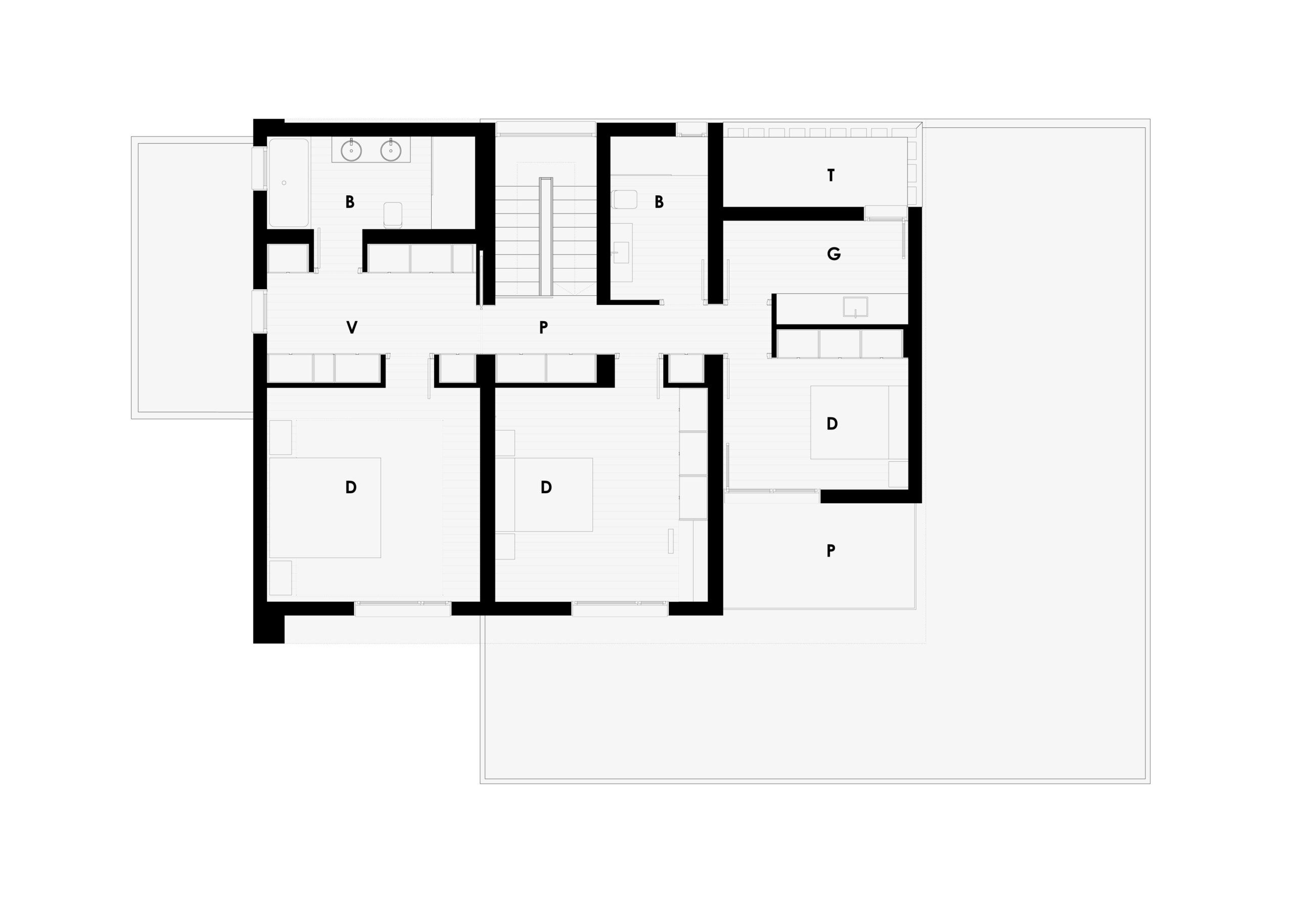 Im Obergeschoss des Hauses befinden sich die Schlafzimmer, eine Master-Suite und zwei Doppelschlafzimmer neben dem Badezimmer.